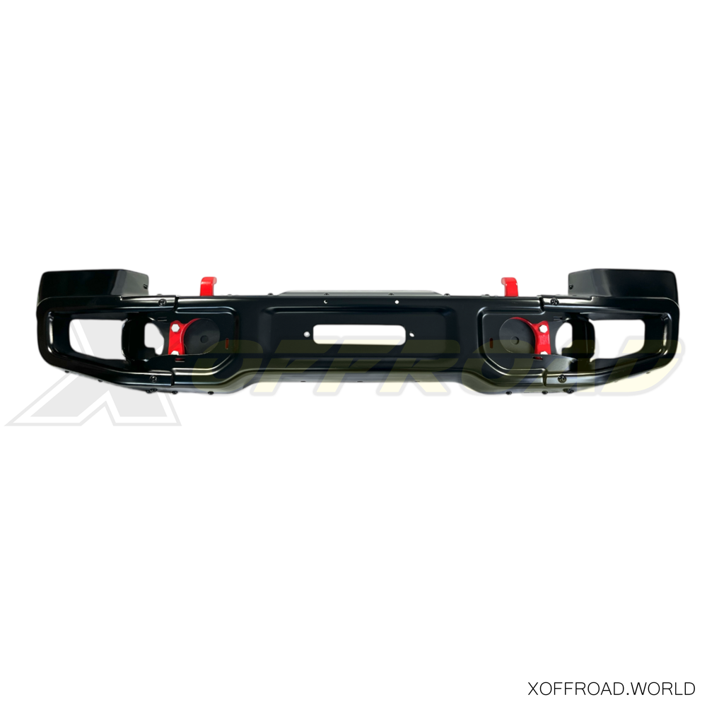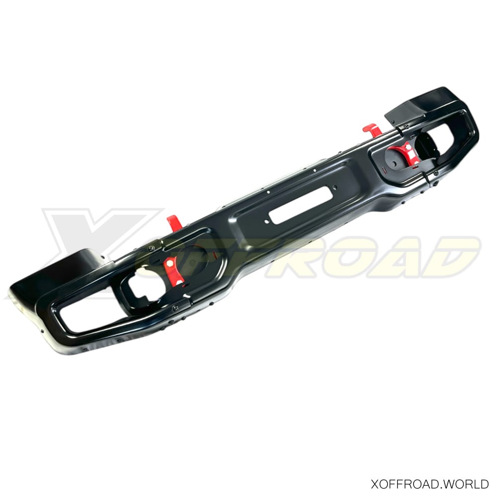 X-offroad présente une nouvelle réplique de pare-chocs en acier à dégagement élevé que vous pouvez voir dans l'édition spéciale de Jeep Wrangler- 10e anniversaire Rubicon. Il est suffisamment large pour protéger les ailes, mais il est plus étroit que le pare-chocs d'origine. La fixation du treuil est basse et n'empêche pas le refroidissement du moteur. La finition noire texturée est enduite de poudre. La peinture de pare-chocs est uniquement une peinture de transport et nous vous recommandons de peindre la pièce avant l'installation. Livré avec embouts amovibles pour plus de dégagement sur les sentiers, crochets de remorquage rouges et plaque d'installation de treuil. Le forfait comprend également des phares antibrouillard.