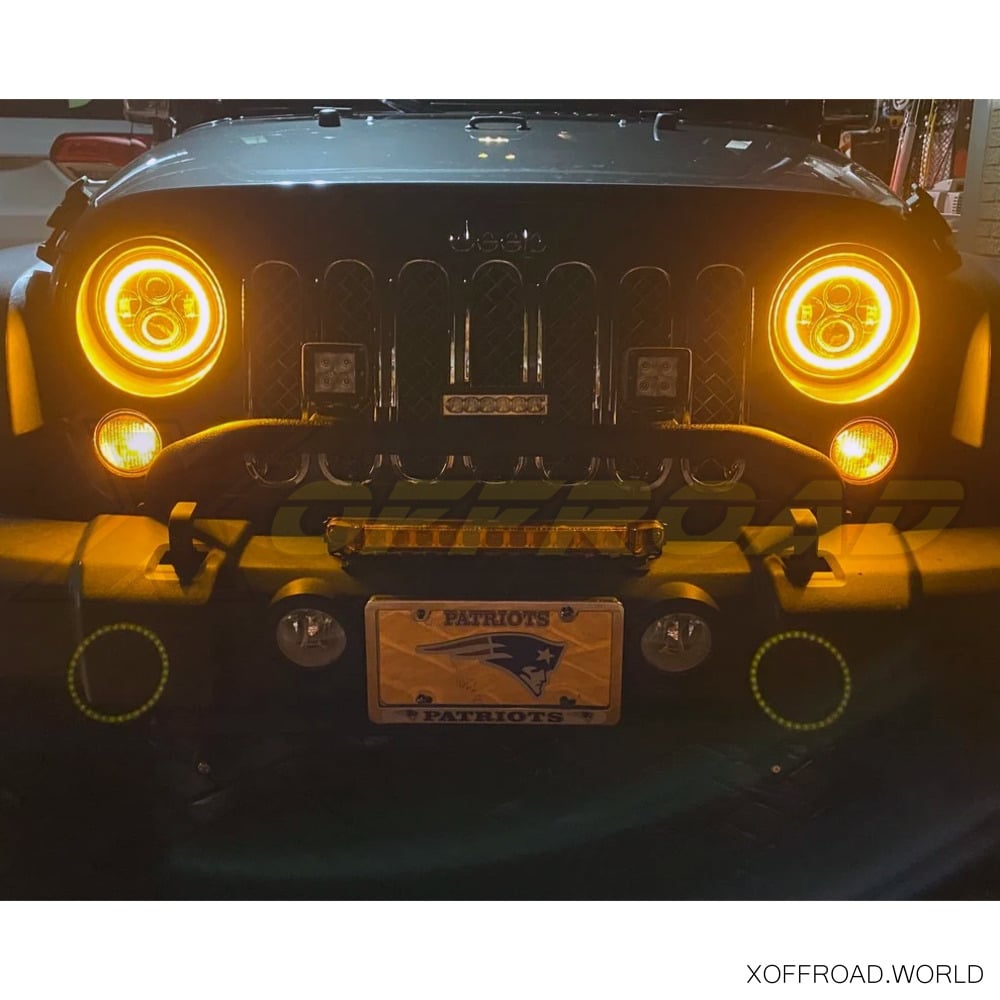 Projecteurs LED homologués européens (E9), certificat inclus. Ces feux ne sont pas livrés avec la fonction de feux de stationnement, seulement les feux de croisement et les feux de route ! Remplacez-vous vos phares d'usine par un éclairage LED haute performance Ces phares à LED augmentent rapidement la visibilité pour une meilleure sécurité X-Offroad feux sont concus pour les passionnés de tout-terrain qui exigent le meilleur Les phares sont livrés Avec une douille H4 (modèle EU) H13 à H4, rougeuction incluse Installation facile: l'installation prête à l'emploi rend ce 7" LED un remplacement rapide et facile pour vos phares d'origine Ces nouveaux phares à LED se caractérisent par une construction de pointe et des fonctionnalités de pointe pour lutter contre les abus hors route extremes. Vendu par paire