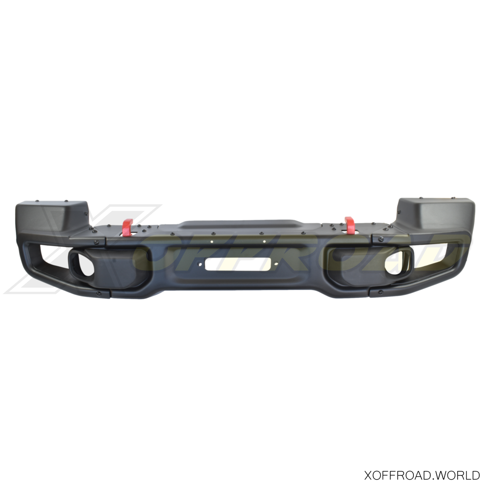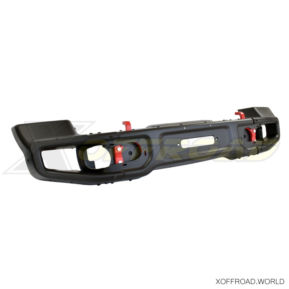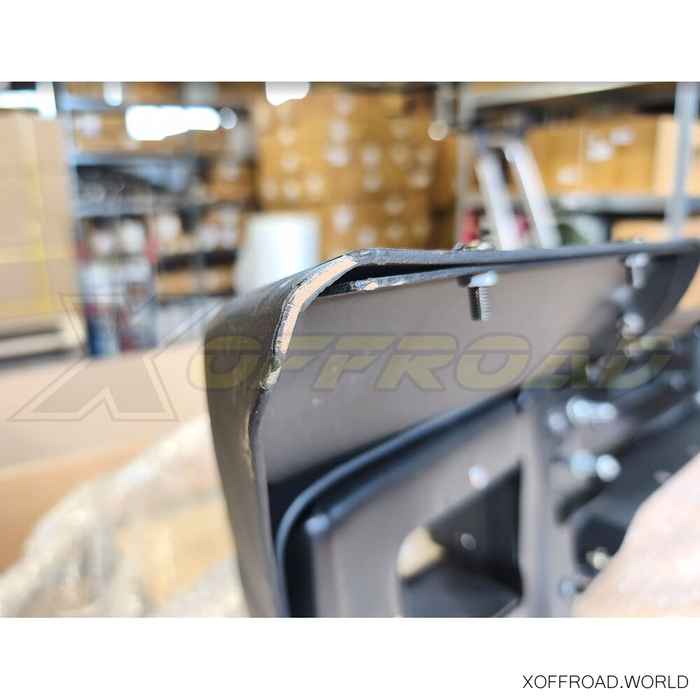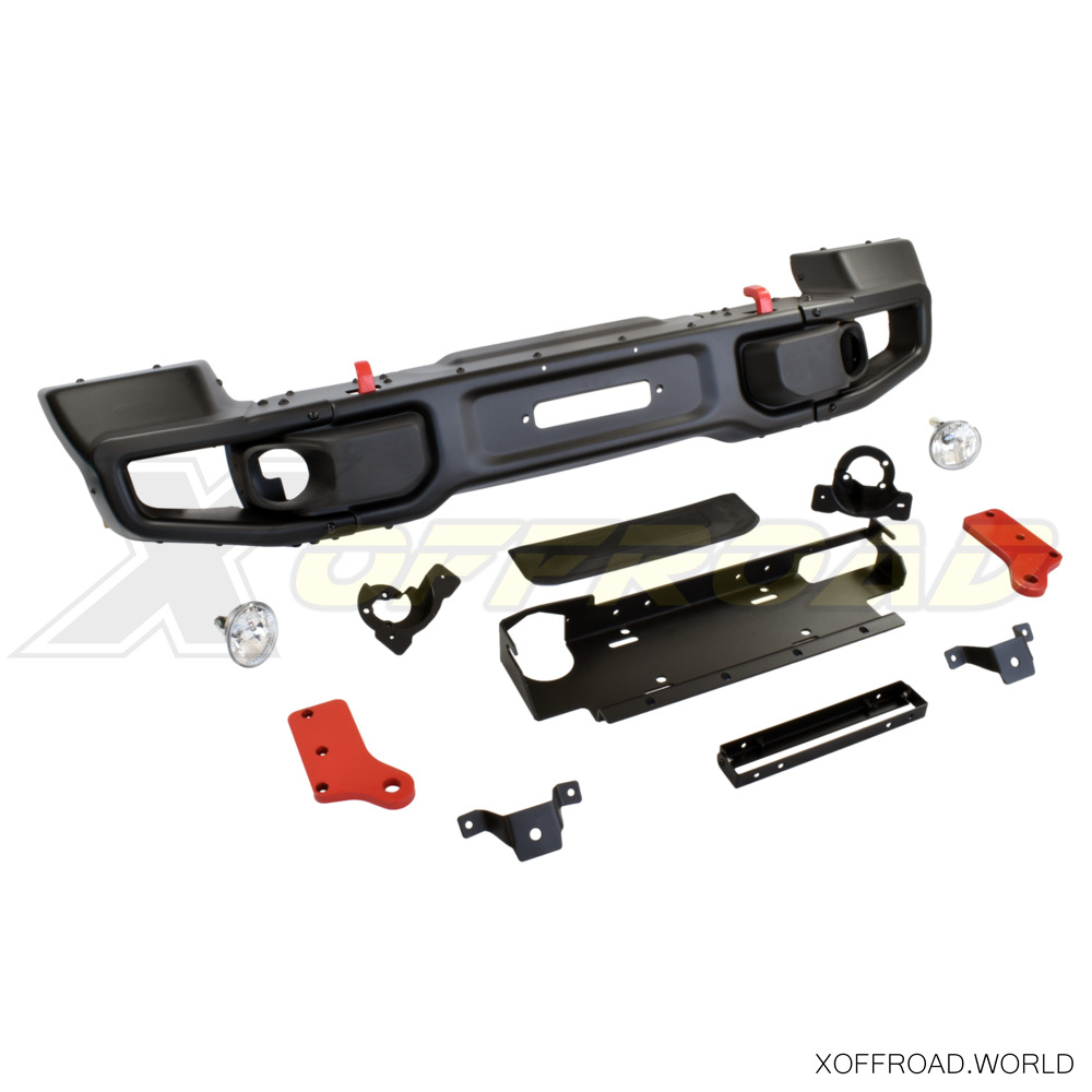 X-offroad présente une nouvelle réplique de pare-chocs en acier à dégagement élevé que vous pouvez voir dans l'édition spéciale de Jeep Wrangler- 10e anniversaire Rubicon. Il est suffisamment large pour protéger les ailes, mais il est plus étroit que le pare-chocs d'origine. La fixation du treuil est basse et n'empêche pas le refroidissement du moteur. La finition noire texturée est enduite de poudre. La peinture de pare-chocs est uniquement une peinture de transport et nous vous recommandons de peindre la pièce avant l'installation. Livré avec embouts amovibles pour plus de dégagement sur les sentiers, crochets de remorquage rouges et plaque d'installation de treuil. Le forfait comprend également des phares antibrouillard.